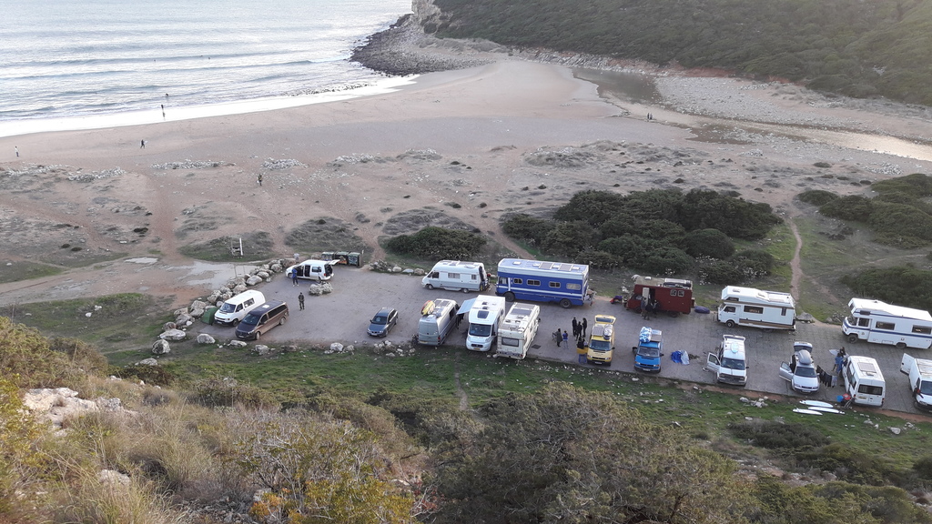 The rigorous approach of the police is very conspicuous compared to other places in Portugal. When I got a visit from a police patrol at a lake in the Alentejo, I was greeted with a handshake. Afterwards, the truck was admired during a cigarette length while we made small talk. Afterwards, the officers said goodbye, saying that I should not leave any garbage behind. The message at Praia do Barranco, however, is very different: accumulations of people who live a nomadic culture are definitely not welcome here.