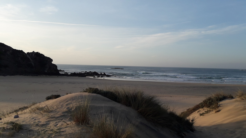 Sylvia has travelled for three weeks to Brazil to work as a freelancer in her old job. To avoid total loneliness I decided to visit the most famous hippie-beach in Portugal: Praia do Barranco. This is the last stop before getting there. After months of dryness it finally started to rain.