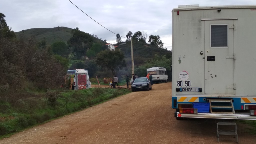 Visiting the Pizza Night Algarve, which is also called Fridayhappiness. This is more or less a hippie club run by a German guy in the mountains of the Algarve. The pictures show the parking area at the foot of the farm or better: open air nightclub.